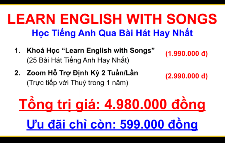 KHÓA HỌC "LEARN ENGLISH WITH SONGS" - HỌC TIẾNG ANH QUA NHỮNG BÀI HÁT TIẾNG ANH HAY NHẤT