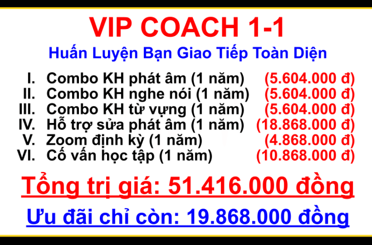 Chương Trình “VIP ENGLISH COACHING 1-1”